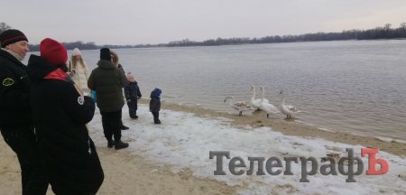 11 лютого у центрі міста кременчужани зустріли лебедів. Птахи прилетіли на намиту косу у Придніпровському парку. Фото у редакцію надіслав читач Стас.