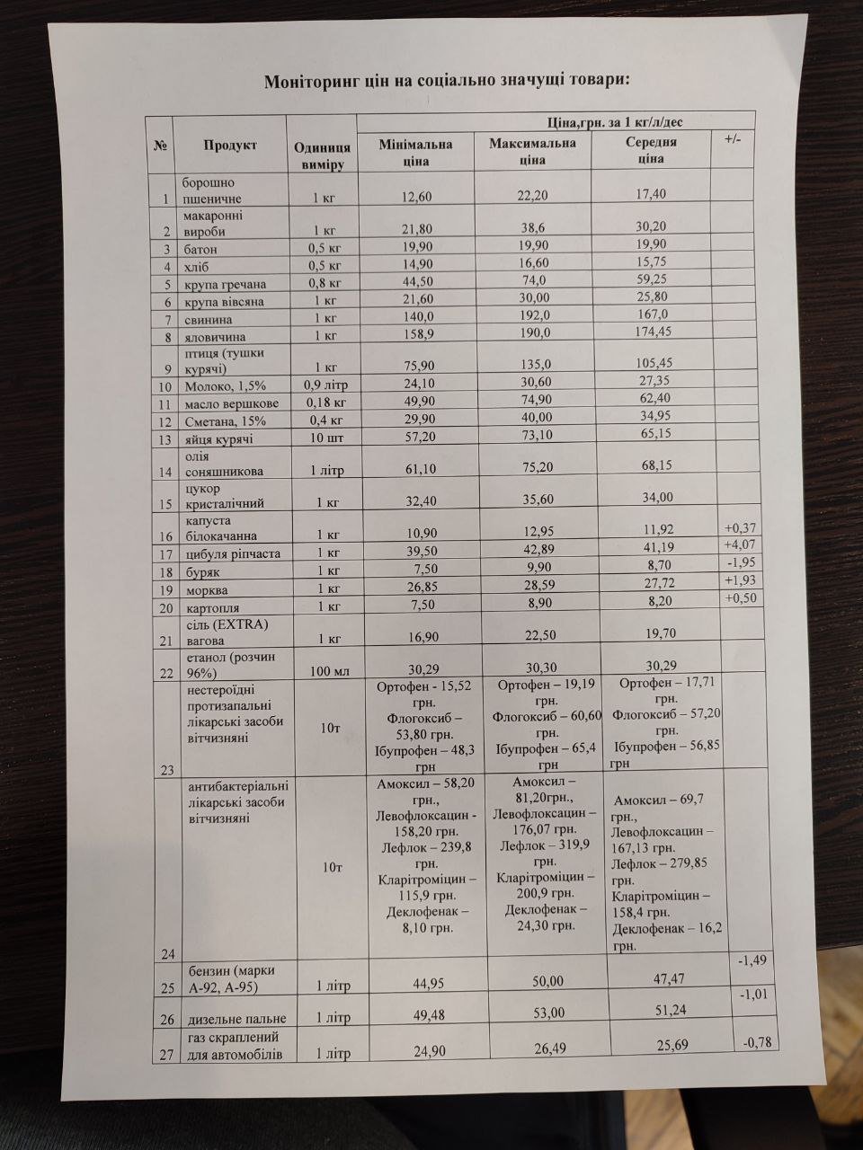 Протягом минулого тижня моніторинг цін проводили у магазинах найбільших торговельних мереж – «Маркетопт», «Оптовичок», «АТБ» та «Ілона» та на автозаправках різних операторів.