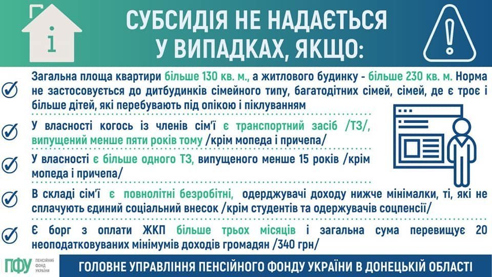 Житлову субсидію не призначають українцям, які мають площу квартири понад 130 квадратних метрів або площу житлового будинку – понад 230 квадратних метрів. Виключення зроблено лише для дитячих будинків сімейного типу, багатодітних сімей та сімей, які мають трьох або більше дітей під опікою. Для таких родин ця норма не застосовується.