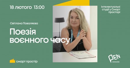 У суботу, 18 лютого, у Козельщині відбудуться «Інтелектуальні студії у Смарт Просторі» зі Світланою Поваляєвою. Лунатимуть поезії воєнного часу.