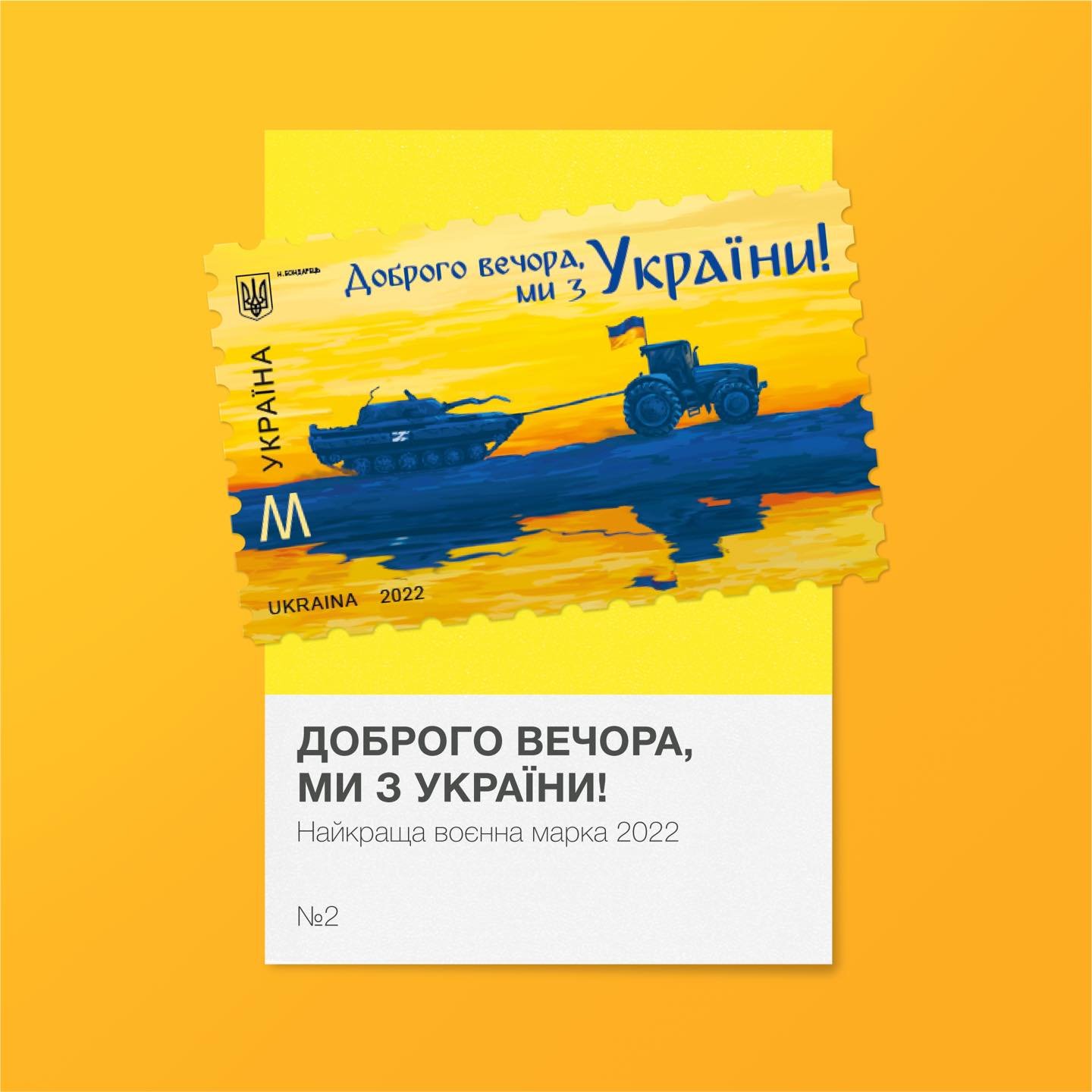 1 місце (197 814 голосів) — поштова марка «Русскій воєнний корабль, іді …!», яка була введена в обіг 12 квітня 2022 року та стала першою української поштовою маркою воєнної тематики. Про випуск цієї марки писали The Guardian, The Times, Washington Post і багато інших світових ЗМІ, звертаючи увагу на війну в Україні.