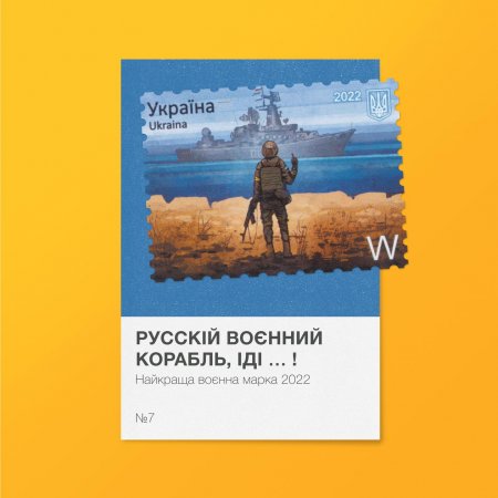 «Укрпошта» оголосила підсумки голосування на найкращу «воєнну» марку 2022 року. Як і очікувалося, нею стала поштова марка «Русскій воєнний корабль, іді …!».