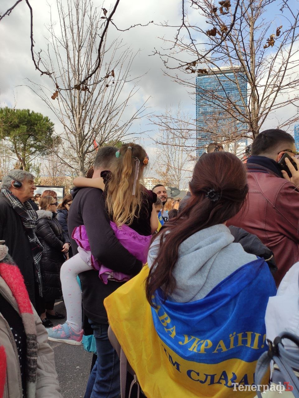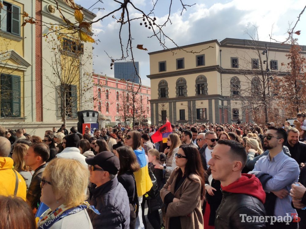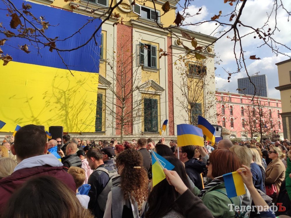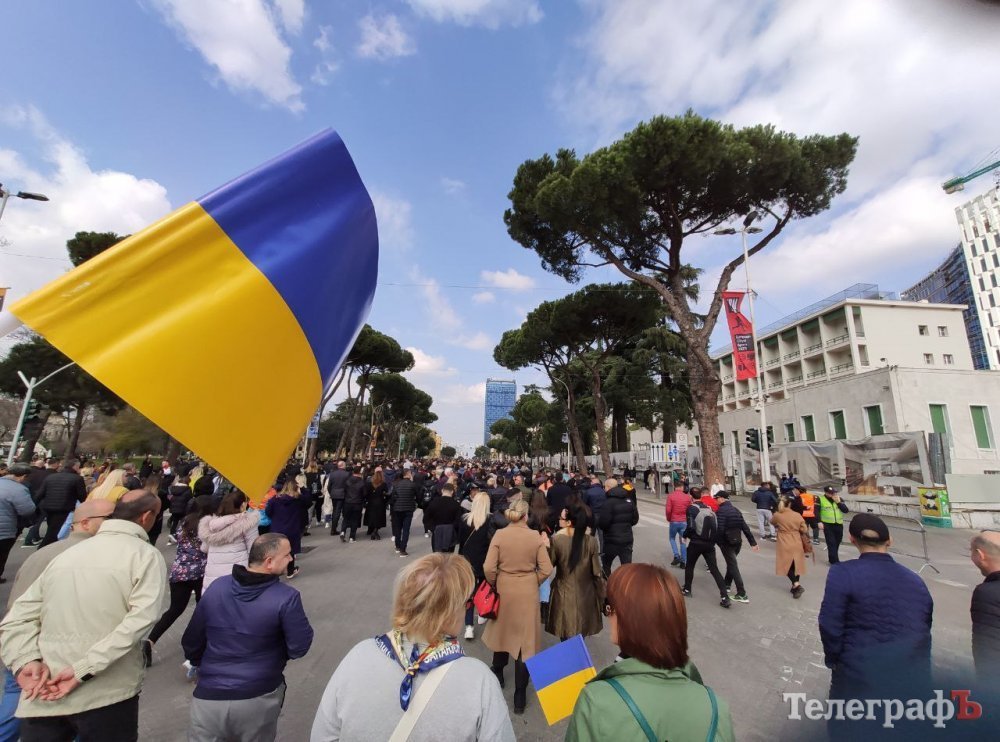 У центрі Тірани 24 лютого о 12.00 зібралися тисячі людей. Усі вони прийшли висловити підтримку українцям – і тим, хто знайшов притулок в Албанії, і тим, хто боронить нашу країну кожного дня. Величезна колона на чолі з послом України в Албанії, політиками, дипломатами, представниками інших держав та мером міста пройшла ходою вздовж бульвару Мучеників Нації на площу Скандербега.