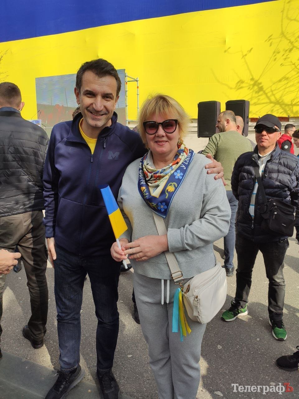 Тут, біля будівлі мерії, прикрашеної величезним прапором України, присутні переглянули невеличкий фільм про події, що відбулися рік тому. Люди побачили українські міста, освітлені іллюмінацією з нагоди новорічних свят, щасливих людей у мирній країні. А потім під звуки сирен повітряної тривоги пролунав голос Президента: «Ми вводимо воєнний стан на всій території нашої держави». І з’явились кадри перших бомбардувань. У цю мить кожен відчув увесь жах і біль, який несе з собою війна.