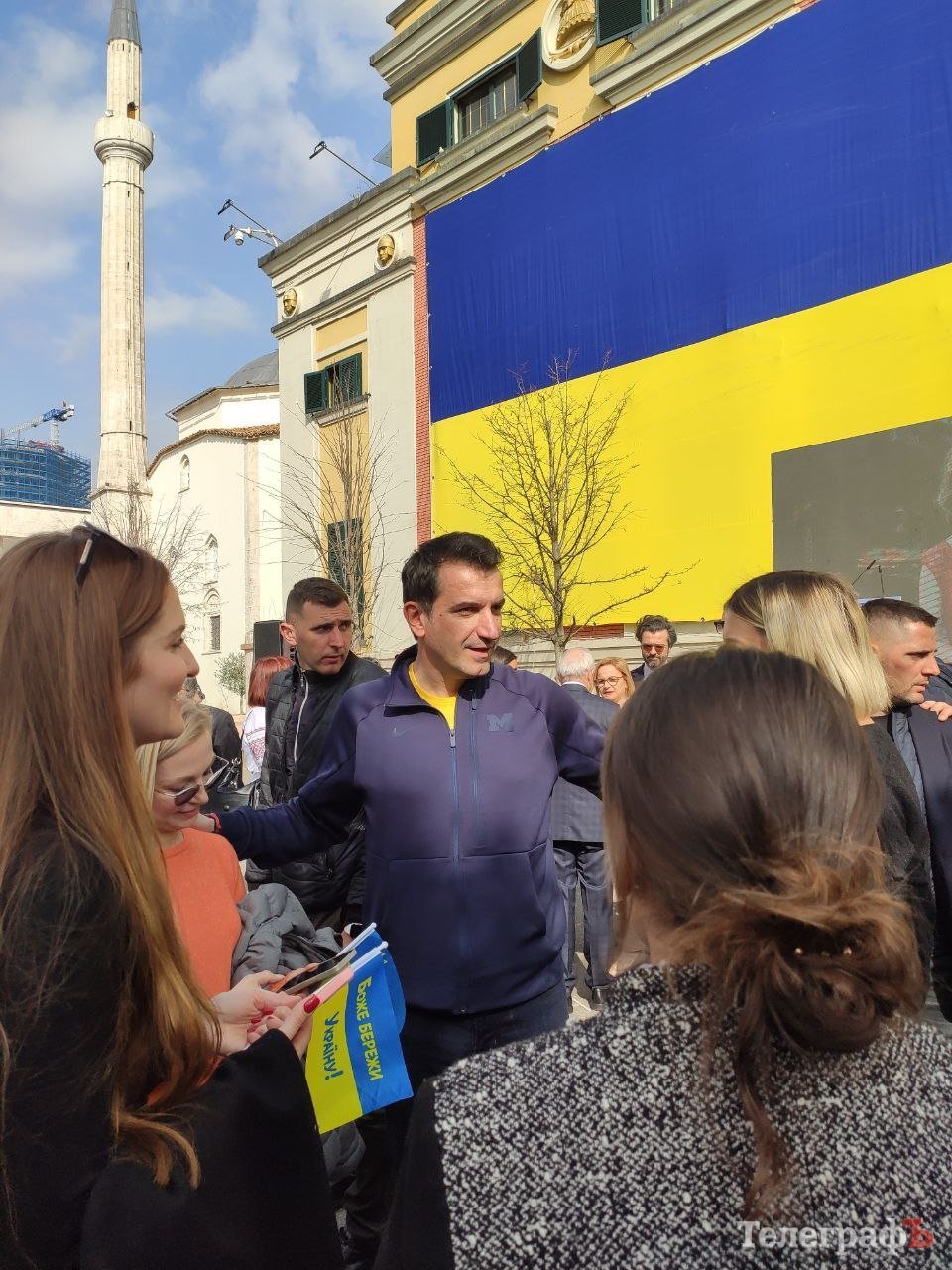 Звернувся до присутніх і мер Тірани Еріон Веліай. Він згадав, як відвідав Київ та Бучу і запевнив, що завжди буде на боці українського народу. А вже після заходу він поспілкувався з українцями, аби дізнатися про їхні потреби.