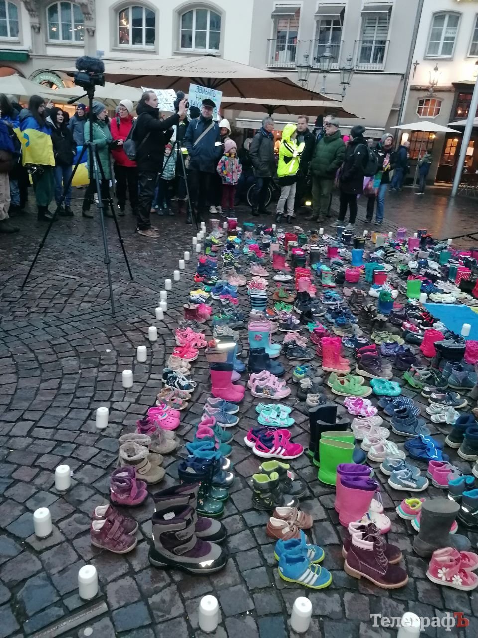 До ратуші принесли черевички – у пам’ять про дітей, загиблих у війні. Із вшанування пам’яті цих невинних жертв розпочала свій виступ пані мер міста Бонн Катя Дьорнер. Вона заявила, що на всіх росіян, які підтримують війну, чекають великі неприємності.