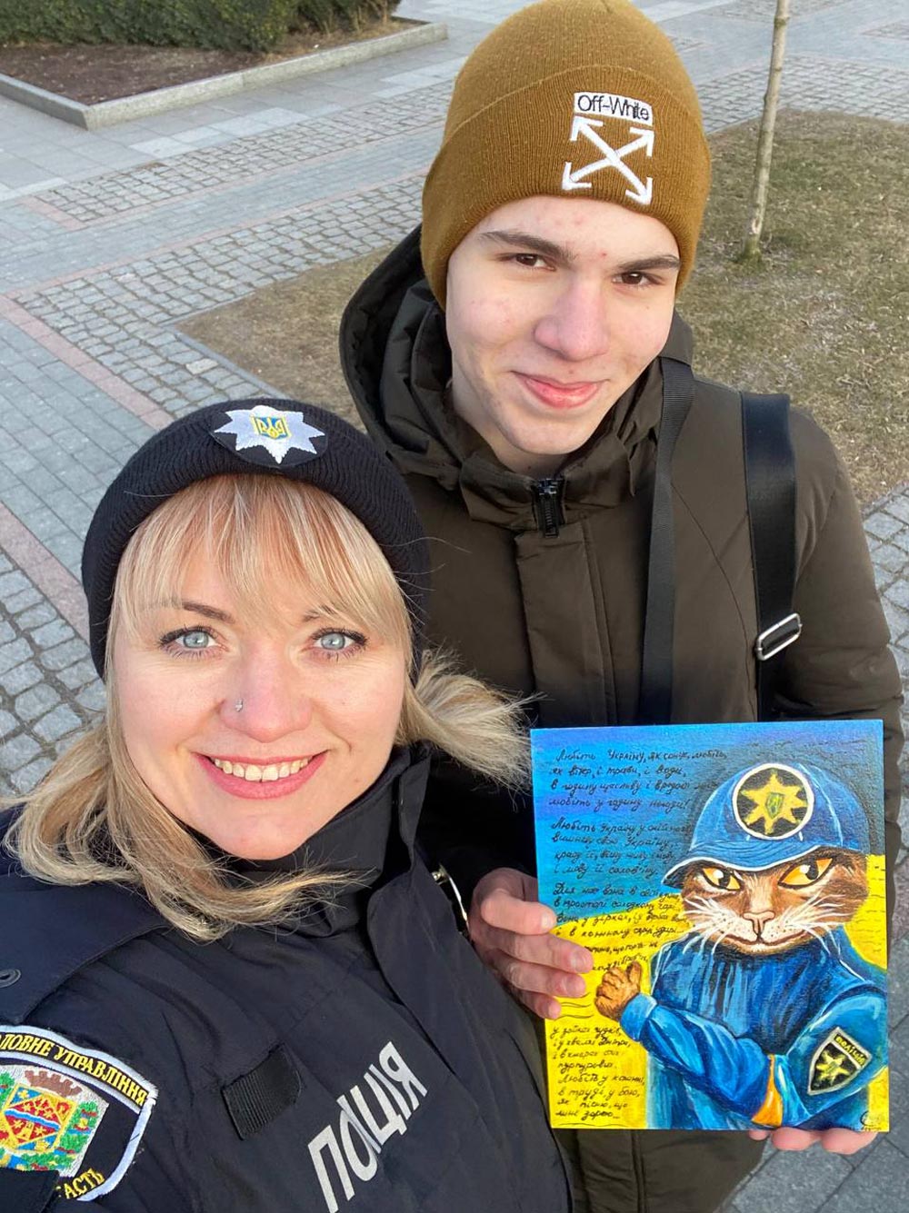 16-річний кременчуцький художник, блогер та волонтер Денис Шинько подарував поліції нашого міста свою творчу роботу – картину, на якій зображений кіт у поліцейському однострої та прописаний вірш видатного українського поета та письменника Володимира Сосюри «Любіть Україну». Про це інформує Кременчуцьке райуправління поліції.