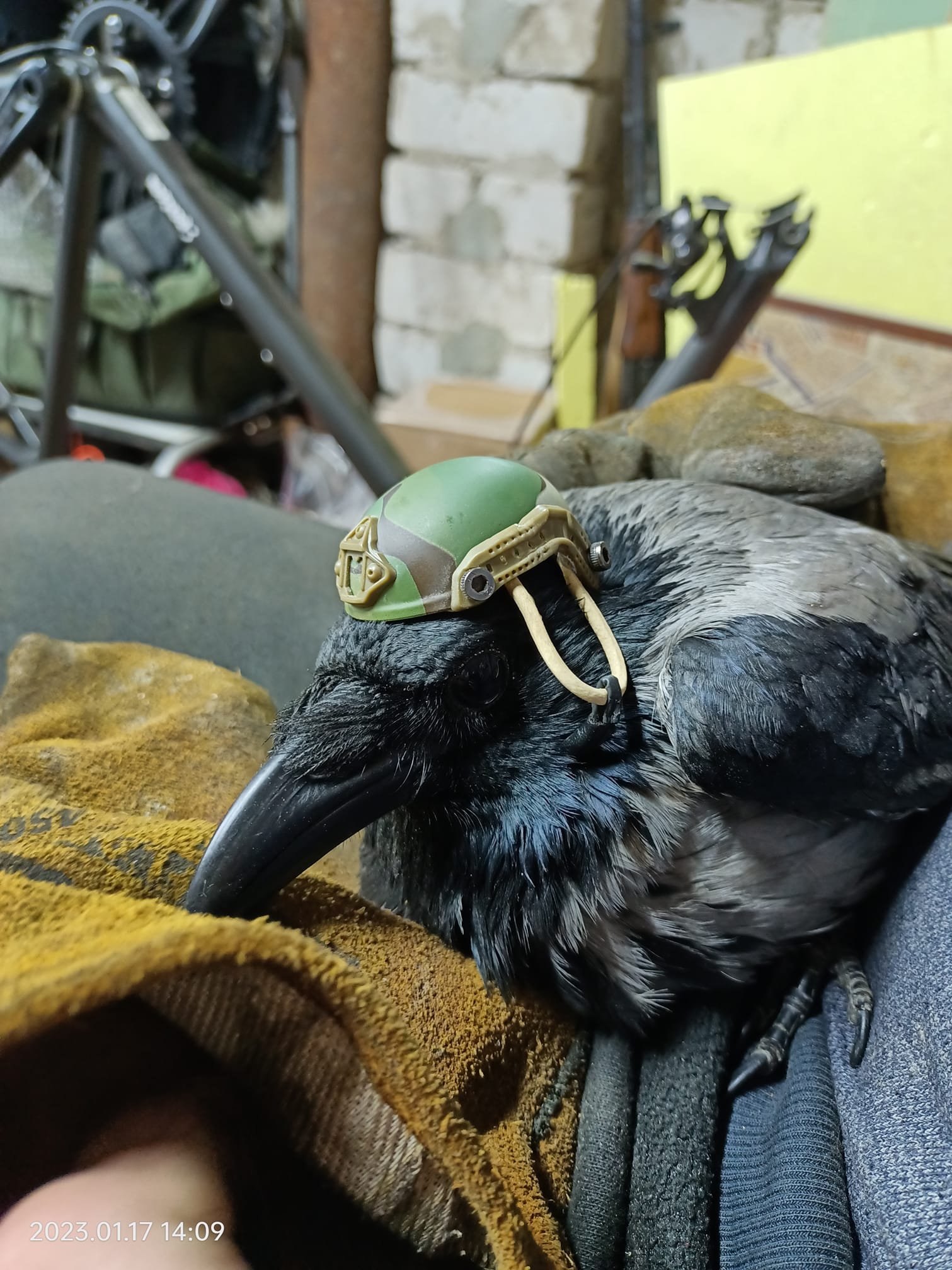 Нещодавно Телеграф писав, що під Кременчуком мешкає бойова ворона Вероніка, яка має власний шолом та розгрузку. Пораненого птаха знайшла родина волонтерів Сілинник із Власівки.
