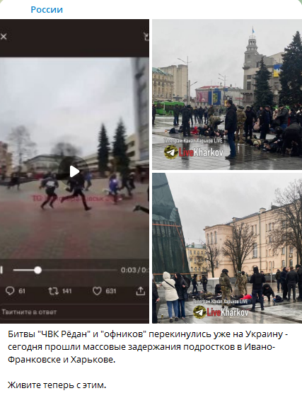 Після хвилі збору молоді в низці міст України, у російських пабліках почали публікувати черговий фейк про побиття та затримання правоохоронцями молоді. Проте зібрання молоді у цих містах пройшли спокійно й без застосування сили. За даними місцевих видань Івано-Франківська, правоохоронців не викликали. Підлітки розповіли, що захід був превентивний, аби запобігти російському руху в Україні. Декілька десятків неповнолітніх зібралися перед міською ратушею, попильнували, чи не має поблизу так званих «ЧВК Редан», поспівали державний гімн і кудись побігли.