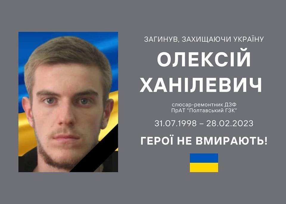 28 лютого загинув військовий з Кременчуччини Олексій Ханілевич. Захисник України з Горішніх Плавнів загинув під час артобстрілу поблизу Кремінної Сєвєродонецького району Луганської області. Олексій у Кременчуці виступав за баскетбольний клуб «Кремінь» у Вищій лізі. У чоловіка залишилася вагітна дружина, яка чекає на донечку.
