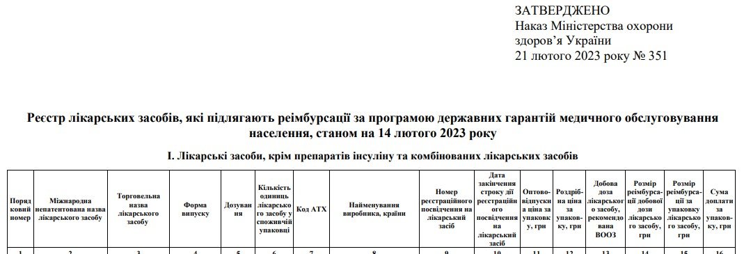 Ділимося реєстром лікарських засобів, які підлягають реімбурсації за програмою державних гарантій медичного обслуговування населення