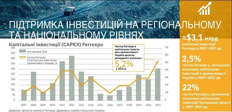 Ferrexpo вже інвестувала у свою діяльність в Україні понад $3 млрд, сплатила понад $1,3 млрд прямих податків в бюджет країни, надала пряму підтримку місцевим громадам та є одним із найбільших роботодавців у Полтавській області.