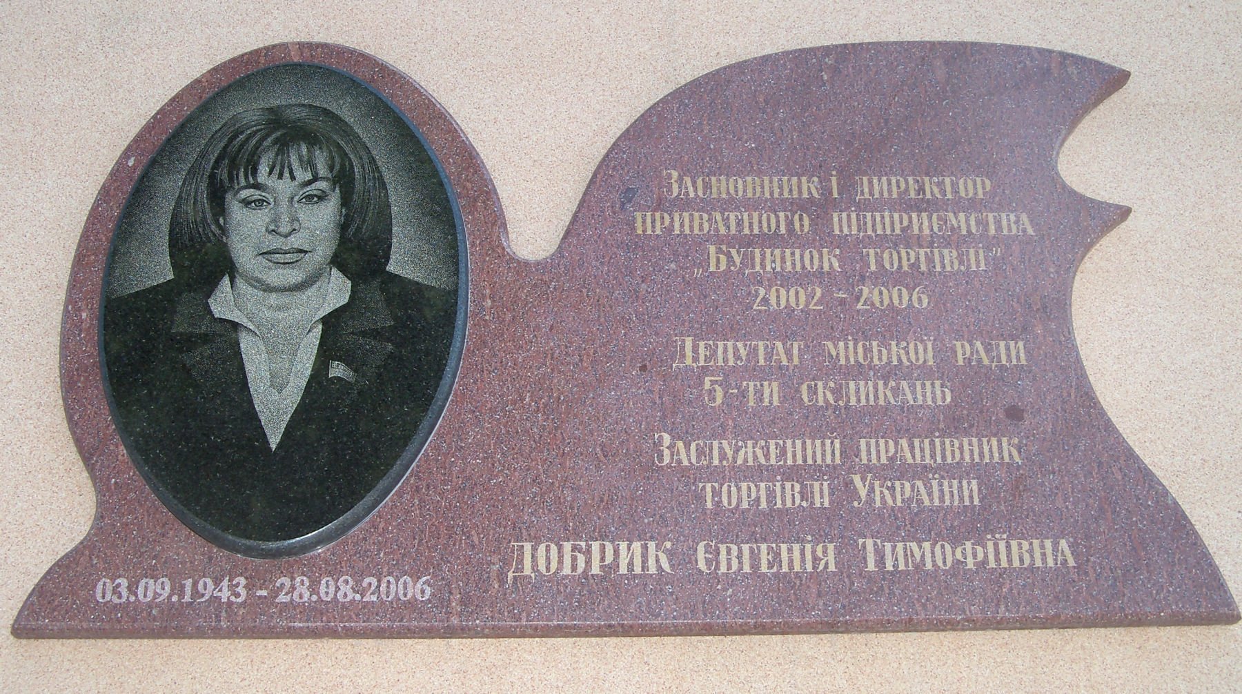 Довідково: відповідно до інформації наукових співробітників Кременчуцького краєзнавчого музею, будинок побудовано в 1954-1961 роках. Будинок торгівлі є виразним зразком післявоєнного цивільного будівництва. Один з небагатьох будинків у місті, оздоблений напівколонами. Дім торгівлі був відкритий для відвідувачів 9 червня 1961 року. У ньому працювала Заслужений працівник торгівлі України Євгенія Добрик. У пам’ять про Є.Т.Добрик на фасаді правого крила будинку встановлена меморіальна дошка.