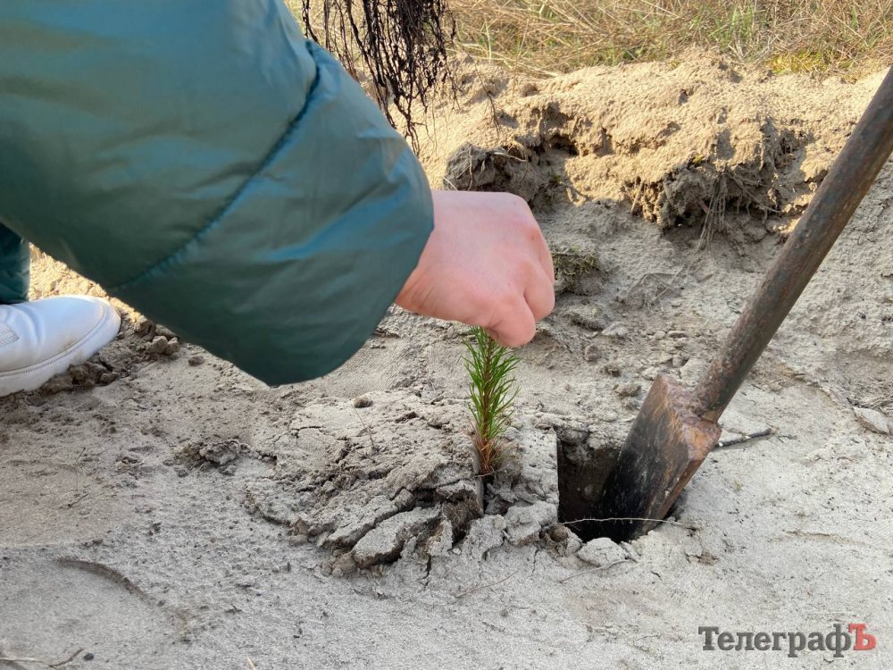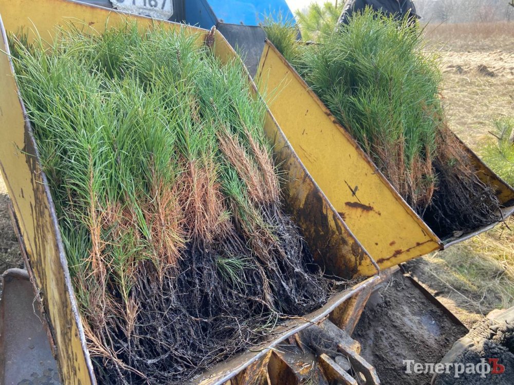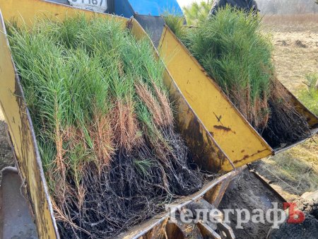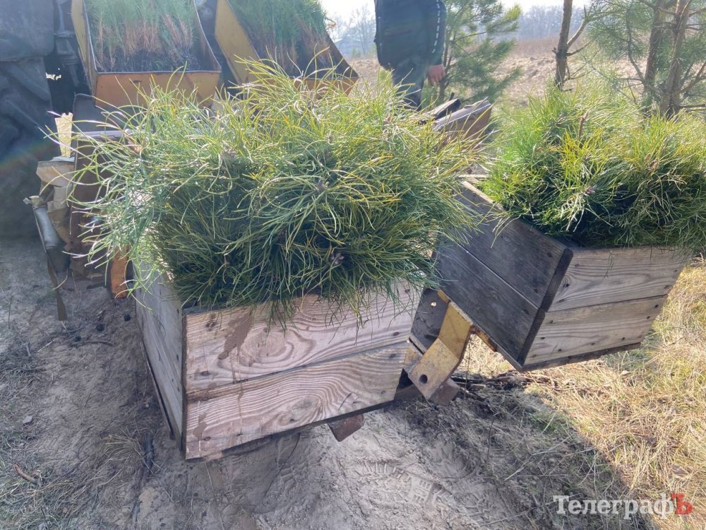 У Піщаному, що під Кременчуком, заздалегідь підготували місця для посадки — невеликі канавки. Поруч стоїть трактор із тисячами сіянців. Це — дворічні сіянці сосни звичайної, які через 7-10 років стануть молодим лісом, а років за 40 — сосновим бором.