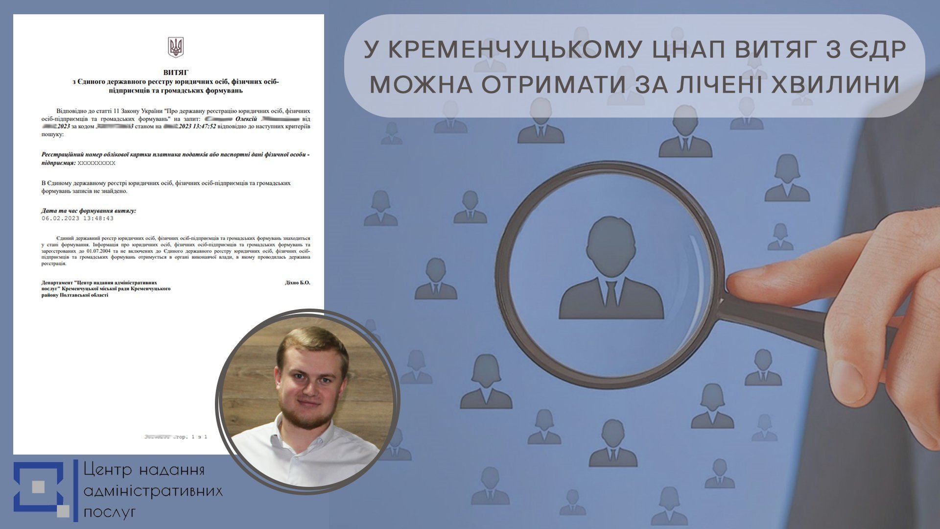 Подати заяву на видачу витягу з ЄДР можна у Кременчуцькому ЦНАПі (послуга 42-04).