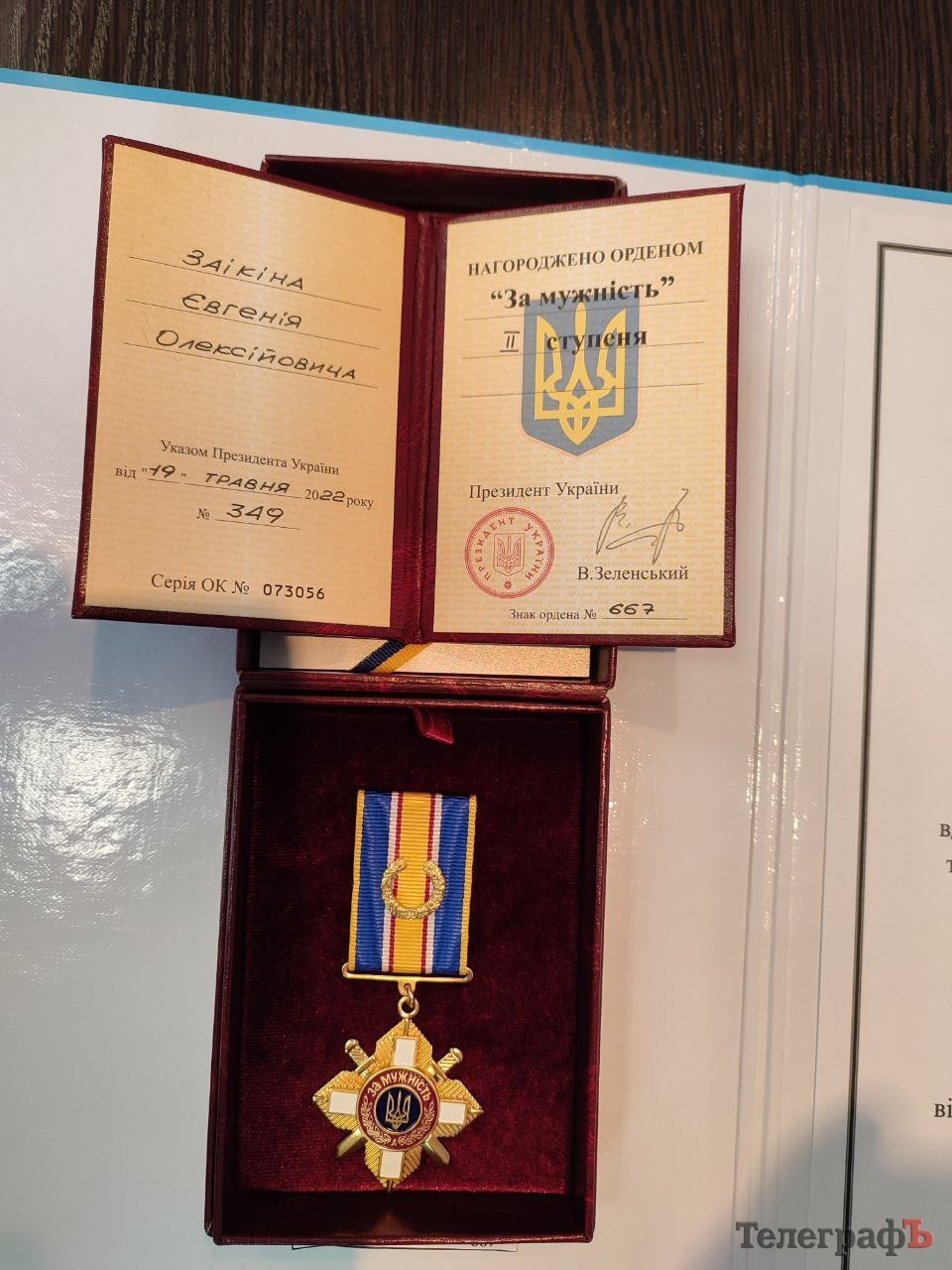 У вітальному листі до військової нагороди старшому солдату Євгенію Заікіну висловили вдячність командування військової частини А0409 та Кременчуцького районного територіального центру комплектування та соціальної підтримки.
