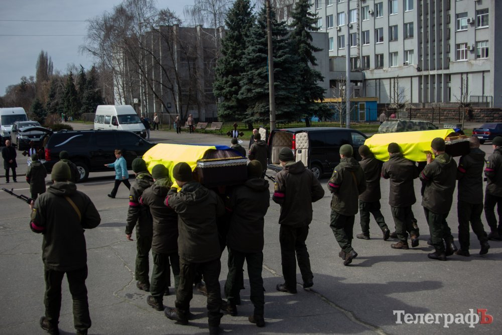 Під військовий оркестр домовини пронесли крізь живий коридор, далі автоколона під гул сирен вирушила до Свято-Миколаївського собору. Поховали військових на Алеї Слави Свіштовського кладовища поряд з іншими захисниками України.