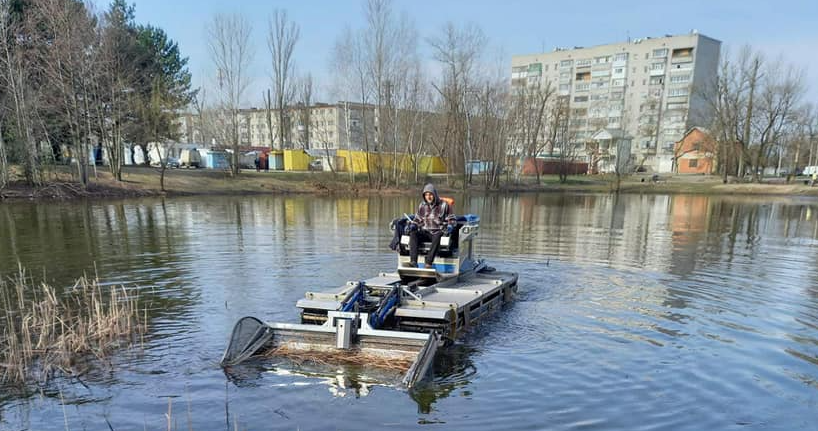 Цього тижня комунальне підприємство «Кременчук АКВА-СЕРВІС» розпочало роботи з розчищення від очерету акваторій водних об’єктів Кременчука за допомогою багатофункціональної машини Truxor T40.