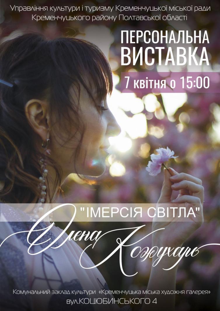 Кременчужани та гості міста зможуть побачити фотовиставку «Подих Наддніпрянщини» фотографа Ігоря Міщенка (велика зала), персональну виставку художниці Олени Кожухарь «Імерсія світла» (анімалістика, абстрактика, портрети) (мала зала), філателістичну виставку «Фотографи України» (стенди).