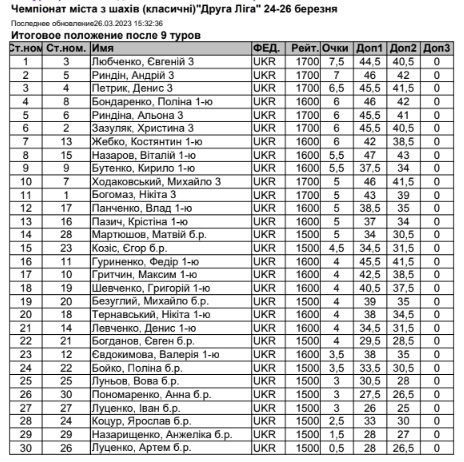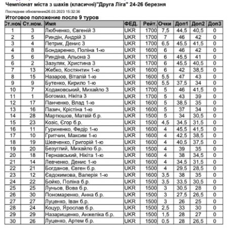 До речі, Поліна і Віталій таки виконали третій розряд! А переможцем заслужено стає Є. Любченко, який переграв Микиту Богомаза в останній партії. Доля другого місця вирішилася в очній дуелі Олени та Андрія Риндіних, кожен із яких претендував на призове місце у разі перемоги, яка цього разу посміхнулася Андрію. Тепер на переможців цього турніру чекає 1 ліга, серед учасників якої будуть і наші шахісти, які набрали досвіду на турнірі «Київської весни» зі знаменитими суперниками, — розповів Володимир Груздєв.