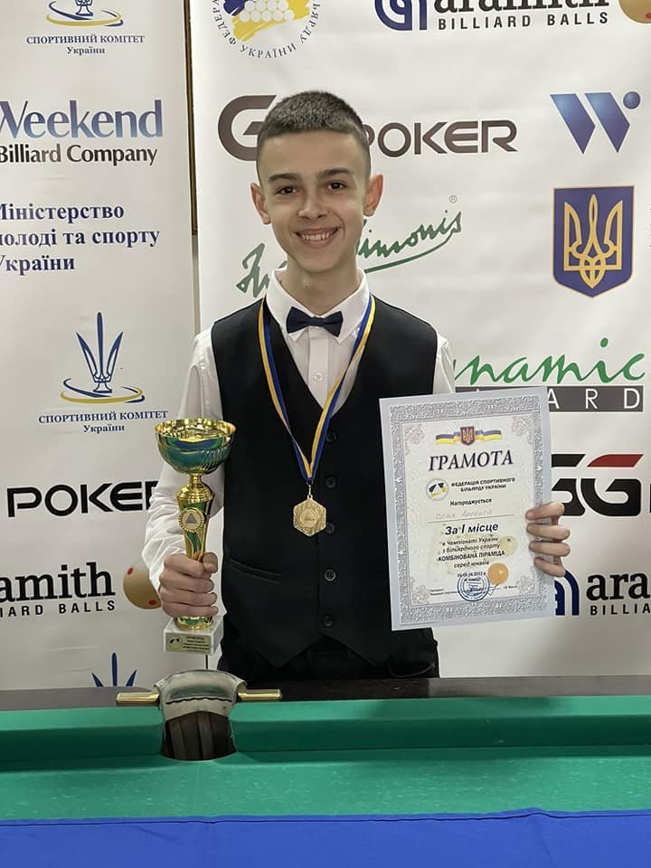 – Відокремлений підрозділ Федерації спортивного більярду України в Полтавській області вітає Вовка Арсенія (учня спортивної школи ДЮСШ «Авангард») та його тренера Даценко Миколу Івановича з впевненою перемогою на чемпіонаті України, який проходив в Ізмаїлі. Арсеній віддав лише 1 партію протягом всього чемпіонату з 14, – написала на своїй сторінці в фейсбуці Анастасія Ковальчук.