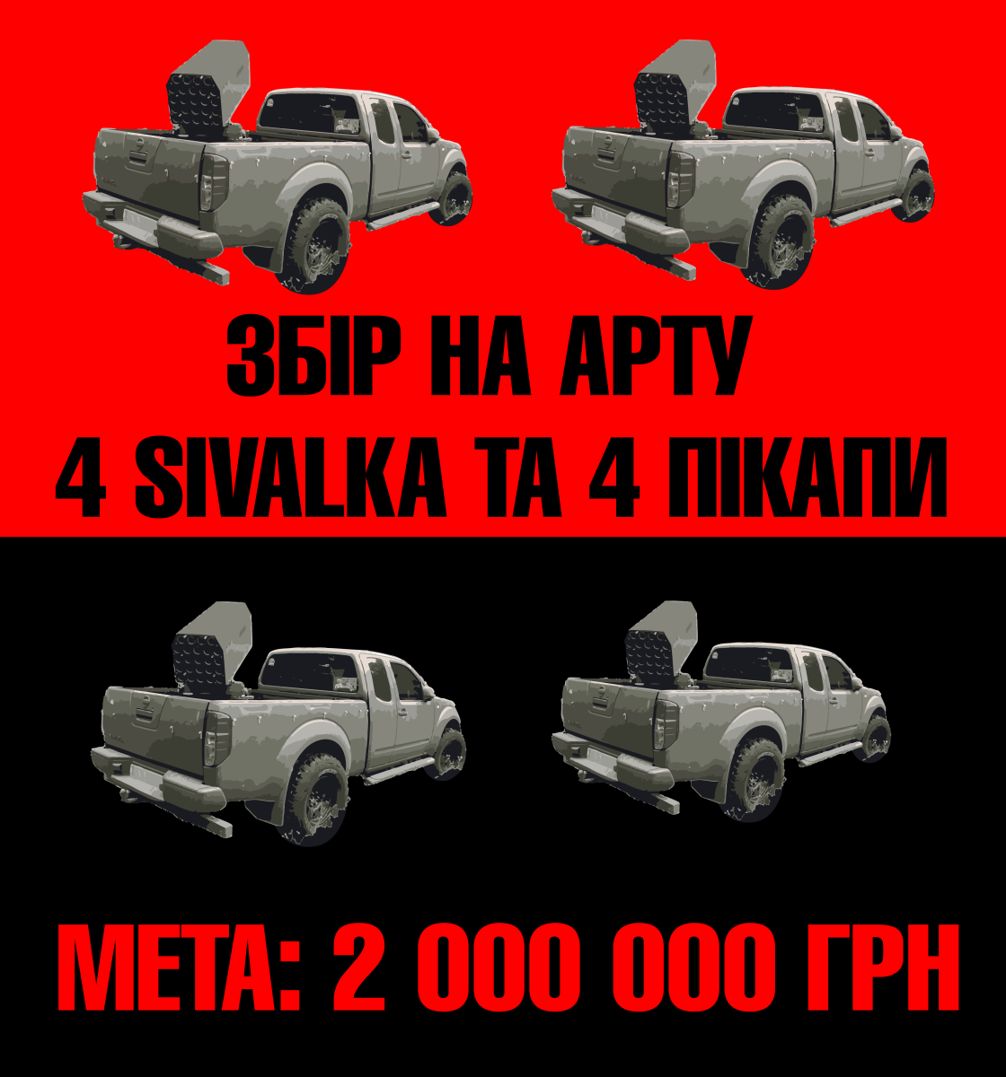 Sivalka – це невеликого розміру реактивна система залпового вогню на 24 ракети, яку розміщують на пікапах + електронна система наведення. Завдяки її мобільності в артилеристів є можливість швидко покинути позицію та уникнути вогневої відповіді. Чим більше таких систем на фронті, тим менше буде ворогів. Саме на 4 таких РСЗВ та 4 автівки для них і збирають 2 млн грн.