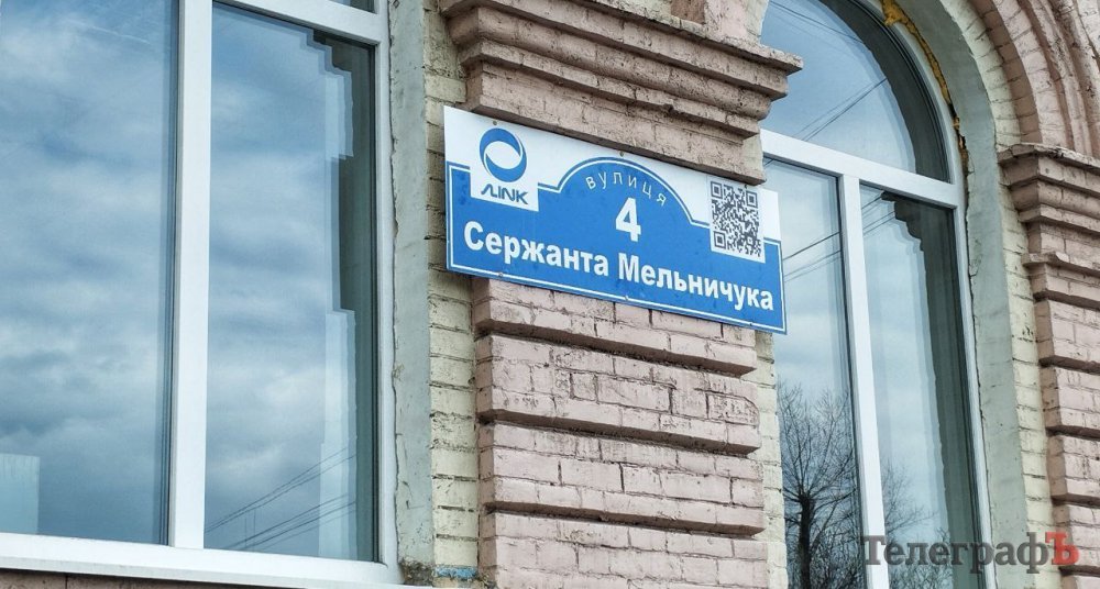 Наприклад, на ПТУ №26 змінили покажчик з назвою нової вулиці — на честь Сержанта Мельничука. Перейшов за посиланням QR-коду можна дізнатися шлях захисника України.