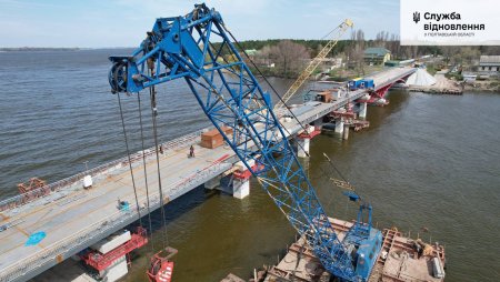 На мосту через річку Сула, що на трасі Н-08 Бориспіль-Маріуполь, підрядники завершили монтаж головних металевих балок та ортотропних плит, роботи тривають цілодобово. Про це повідомили в Службі відновлення та розвитку інфраструктури у Полтавській області