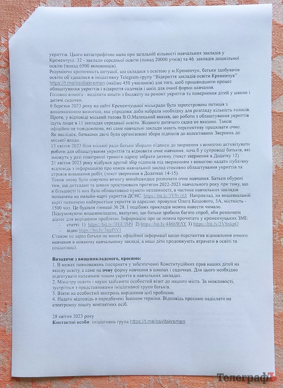 Усіх охочих запрошують долучитися і поставити свій підпис під зверненням до міністра освіти Оксена Лісового щодо відкриття садочків і шкіл нашого міста.