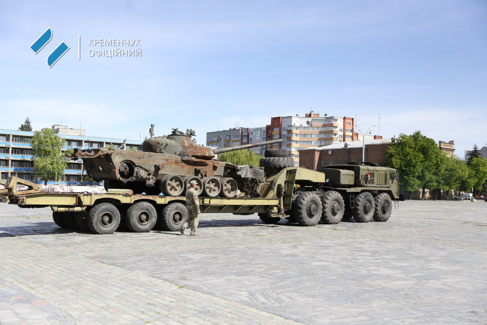 Сьогодні, 4 травня, з головної площі Кременчука прибрали трофейні танки. Їх знищили бійці ЗСУ під час контрнаступу в Харківській та Херсонській областях.