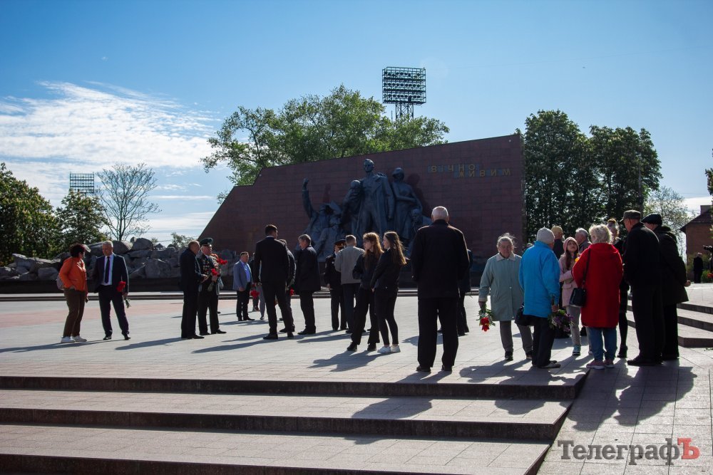 8 травня військові, ветерани, представники міської ради та небайдужі кременчужани поклали квіти до підніжжя меморіалу «Вічно живим»*, аби вшанувати пам’ять тих людей, які загинули у нашому місті під час Другої світової війни.