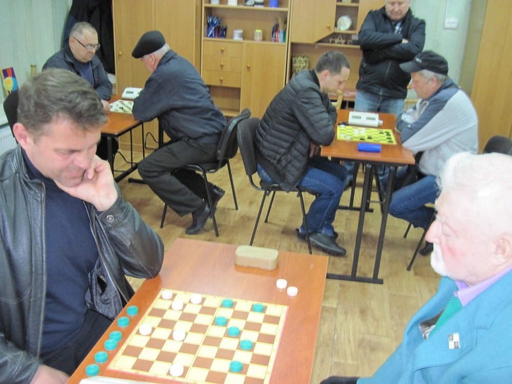 Завершився квітень шашковим турніром, у якому за круговою системою при 9 учасниках грали шашисти з Горішніх Плавнів, Козельщини та Кременчука. Кременчук представляв багаторазовий чемпіон міста, кандидат у майстри спорту Володимир Мількін та позаторік чемпіон області серед держслужбовців Олег Тищенко. Обидва розпочали турнір з перемог – Володимир над Олексієм Вішаром з Горішніх Плавнів, а Олег над Володимиром Лавриком із Дмитрівки. По суті, це був останній неофіційний чемпіонат Кременчуцького району, тому що після нього пройшли збори щодо заснування шахово-шашкової федерації Кременчуцького району. Про це трохи пізніше, а поки що повернемося до турніру. Окрім В.Мількіна традиційне лідерство у турнірі захопив кандидат у майстри спорту із Козельщини Анатолій.Остапченко. Жереб звів їх між собою в 4-му турі, в якому грав білими А. Остапченко визнав свою поразку.