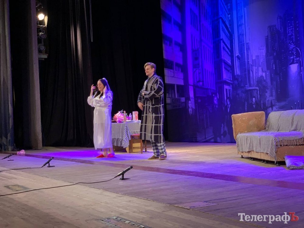 У кінці вистави, коли Ірина Гатун говорила глядачам про ніжність, любов та сімейні стосунки, на сцену вийшов кременчужанин із дівчиною – вручити акторам квіти. І тут несподівано він зробив їй пропозицію руки й серця. Ми з’ясували, що це був військовий Ігор Якимець, а дівчину звати Світлана Олійник.