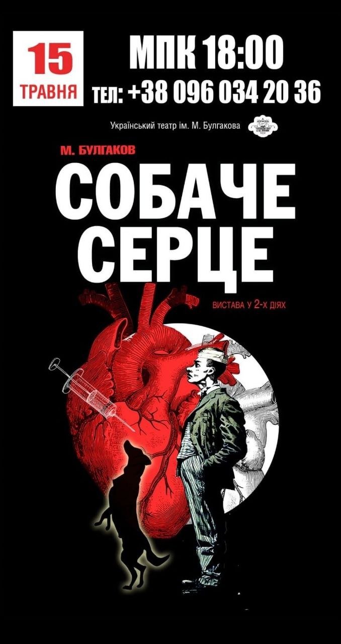 15 травня у кременчуцькому Міському палаці культурі Український театр ім. Михайла Булгакова показав виставу у 2-х діях «Собаче серце». Постановка за сатирико-фантастичною повістю суперечливого в українських реаліях Михайла Булгакова відбувалася українською мовою.