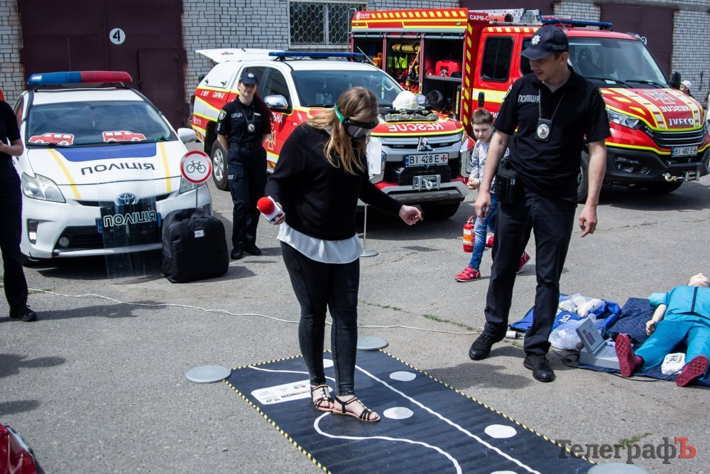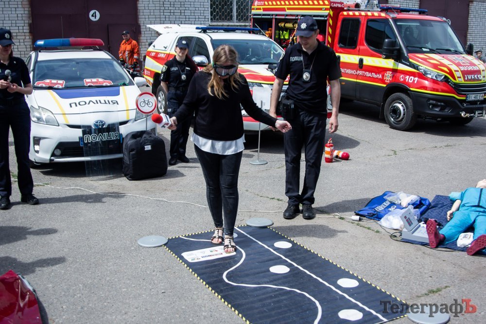 Далі дітям запропонували відповісти на кілька питань, пов’язаних з правилами дорожнього руху. На більшість питань діти відповідали правильно. Після цього охочі, яким виповнилося 18 років, отримали змогу відчути вплив алкоголю на органи чуття за допомогою спеціальних окулярів. Протестувала їх на собі й журналістка «Кременчуцького Телеграфа».