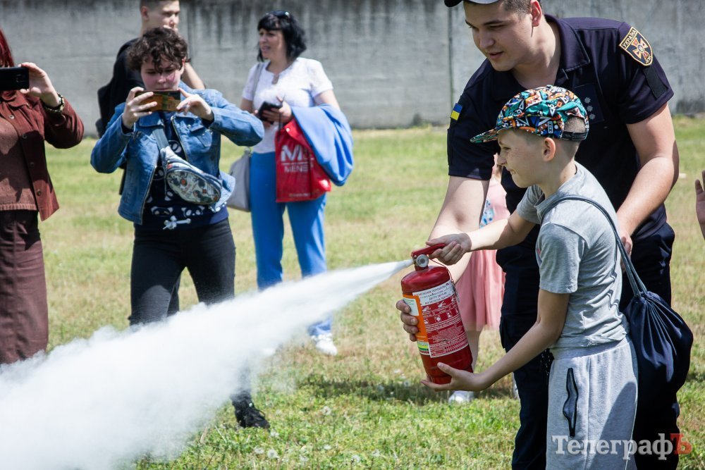 Так справа дійшла до вогнегасників. Спочатку працівники ДСНС розповіли та показали, як правильно користуватися вогнегасниками й охочим дітям запропонували спробувати. Вогнегасники зацікавили дітей найбільше, тож охочих виявилося забагато.