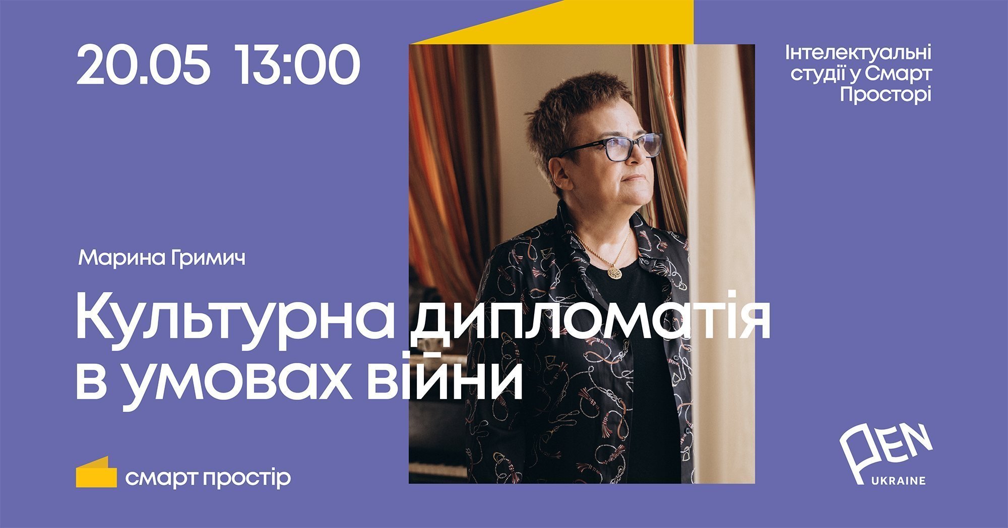 У суботу, 20 травня, о 13.00 у Козельщині відбудуться «Інтелектуальні студії у Смарт Просторі» з Мариною Гримич на тему «Культурна дипломатія в умовах війни».