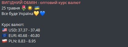 Для підписників Телеграм-каналу діють оптові, а також спеціальні пропозиції для вигідного обміну: