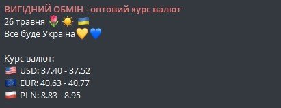Для підписників Телеграм-каналу діють оптові, а також спеціальні пропозиції для вигідного обміну: