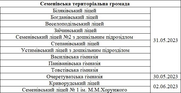 У Глобинській та Семенівській громадах немає спільної дати для всіх закладів освіти.