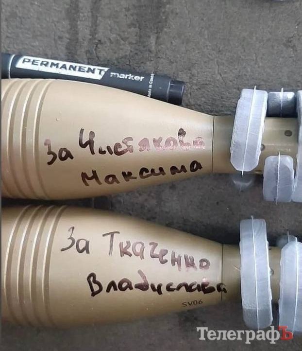 Військові помстилися за смерть побратимів із Кременчуччини Владислава Ткаченка та Максима Чистякова. Бійці написали на снаряді імена полеглих воїнів із Горішніх Плавнів.