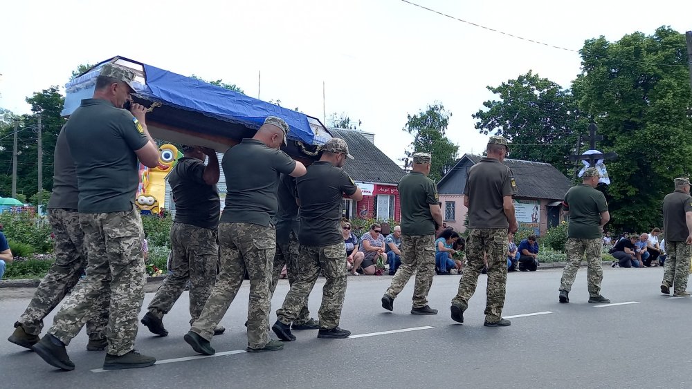 Військового поховали у Дніпрі як невідомого. Згодом його тіло ідентифікували. Перепоховання і прощання із Героєм відбулося лише сьогодні у рідному селищі Руслана, на яке зібрались сотні жителів громади.