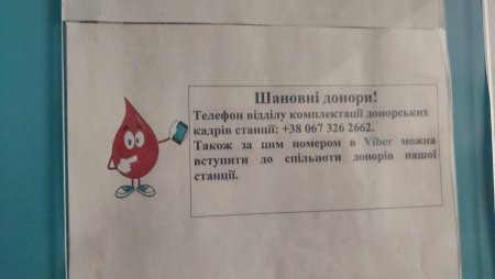 Кременчуцькій станції переливання крові терміново потрібні донори всіх груп крові у великій кількості. Про це стало відомо від заступника керівника з організаційно-методичної роботи станції Світлани Каплатої.