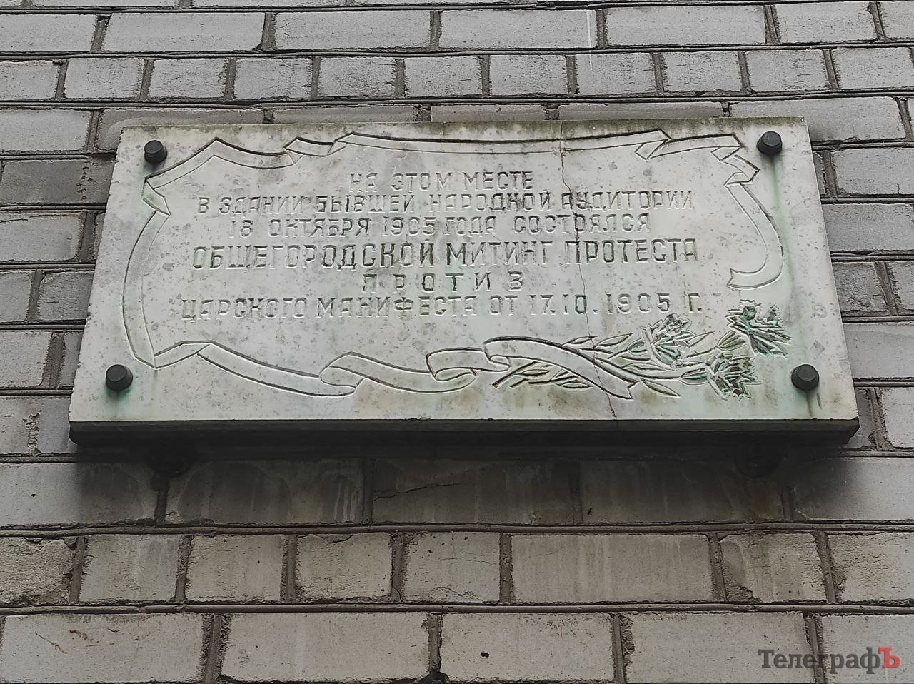 Планують демонтувати меморіальну дошку Герою Радянського Союзу Барвінському О.Д.. Вона знаходиться на фасаді Кременчуцької гімназії № 20. А також меморіальну дошку з нагоди подій 1905 року, що на КВТФ «Кремтекс» (на фото).