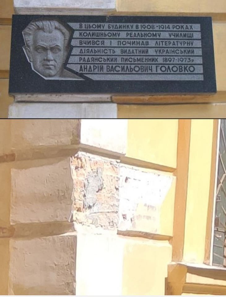 Згідно з рішенням виконкому міськради у Кременчуці вже демонтували й меморіально-анотаційну дошку, що звеличувала психічнохворого колаборанта й радянського комуністичного письменника Андрія Головка. Він служив в Армії УНР, але згодом зрадив свою державу, дезертирував, перейшов на бік російських більшовиків: влітку 1920 року добровільно вступив до лав окупаційної Червоної Армії, де спершу очолив підрозділ кінної розвідки, а згодом став лектором у Харківській школі червоних старшин. У 1989 році В’ячеслав Чорновіл опублікував зізнання Головка про вбивство своєї родини в забороненому у СРСР самвидавчому часописі «Український Вісник». Цитуємо: «Головко – класик соцреалізму, виявився «душогубом». 14 травня 1924 року Андрій Головко пострілом із револьвера системи «Наган» убив власну дружину Тетяну Семенівну Головко, 27 років. Наступного дня застрелив свою п’ятирічну доньку Галину; проходив лікування у психіатричній лікарні».