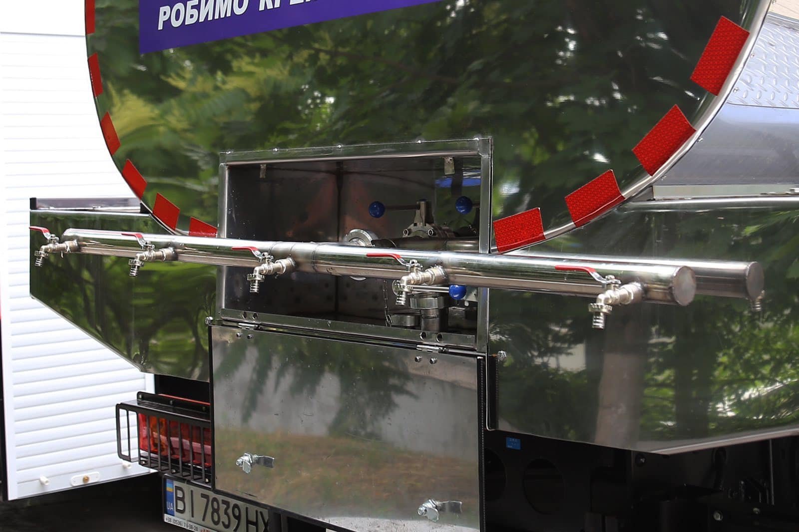 Це автомобіль КП «Кременчукводоканал», набирати з нього воду можуть одночасно п’ятеро людей.