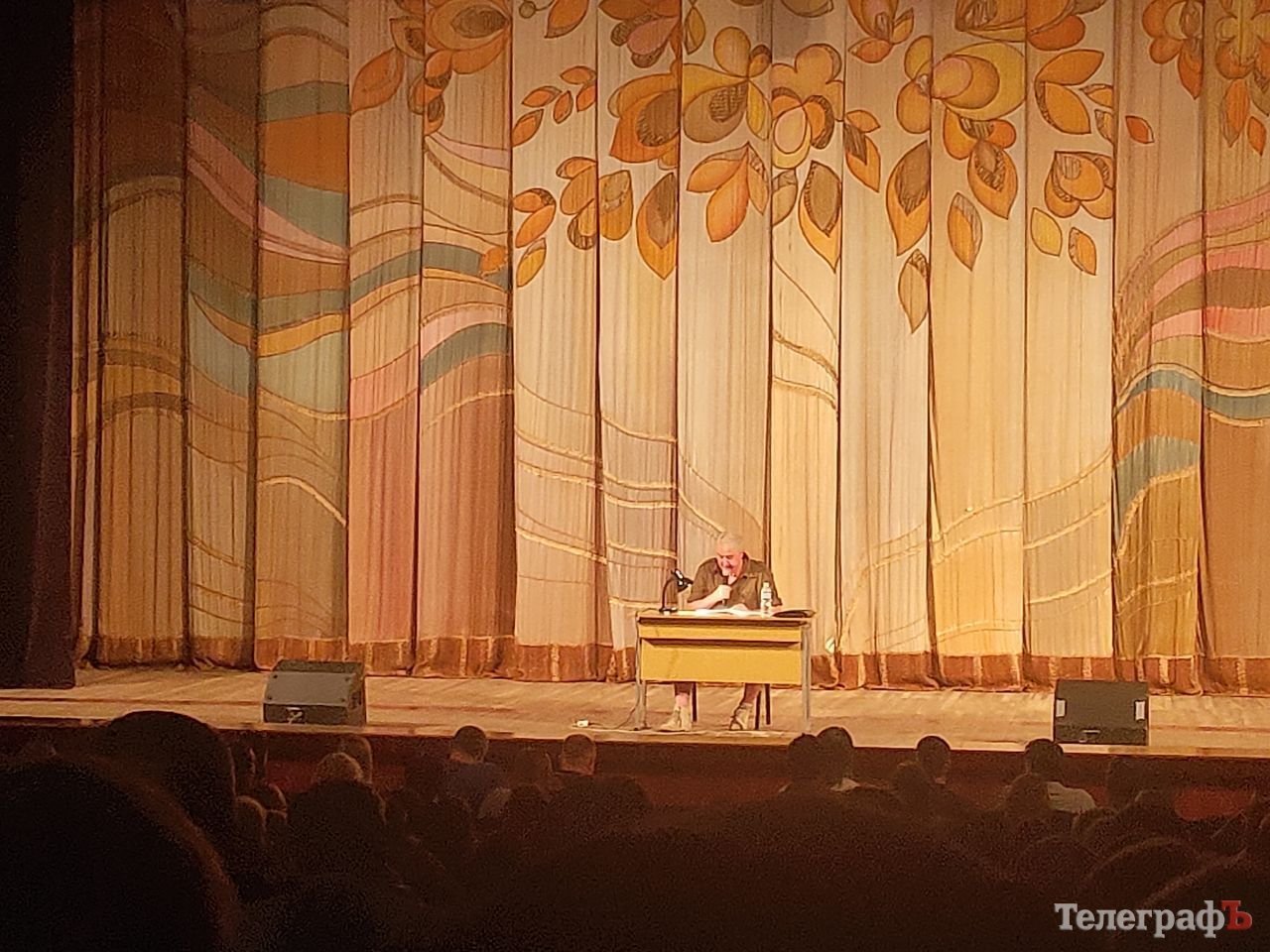 Твори, написані суржиком і гостро приправлені нецензурною лексикою, класик укрсучліту, на відміну від попередніх разів, представив у МПК, а не ПК «Кредмаш». Цього року, щоправда, послухати сатирика прийшло значно більше люду — у залі ледь були вільні місця. І це попри те, що початок затримався на аж 1,5 години через повітряну тривогу, яка залунала саме у той момент, коли глядачі почали займати місця у залі, і тривала до 20.00. А проте, кременчужани терпеливо чекали — і дочекалися, тож кожен уривок вітали оплесками, схвальними вигуками та цитатами.