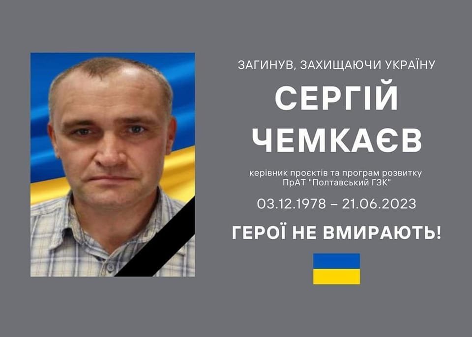 Під час виконання службового обов?язку на польовому виході помер військовий з Кременчуччини Сергій Чемкаєв. Сергій народився 3 грудня 1978 року у Горішніх Плавнях. Після закінчення навчання у школі, вступив у Національний гірничий університет, де здобув кваліфікацію гірничого інженера. Свій трудовий шлях у Ferrexpo розпочав 2003 року як оглядач-ремонтник вагонів цеху відвантаження готової продукції Полтавського ГЗК.