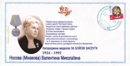 22 червня у День скорботи і вшанування пам’яті жертв війни в Україні кременчуцькі філателісти зробили погашення конвертів з підпільницями міста Кременчука Мінаковою Наталією Миколаївною та її донькою Носовою Валентиною Миколаївною (дівоче прізвище Мінакова). Жінки були нагороджені медалями «За бойові заслуги».