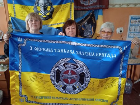 Справді, стіни приміщення прикрашають прапори. На столах стоять подарунки, серед яких розмальована руками захисників гільза. Коли її фото виклали у ФБ, одразу посипалися пропозиції щодо продажу. Пропонували навіть за тисячу доларів продати, але дівчата кажуть, що той подарунок — безцінний, тому він і досі зберігається у них. Також серед «скарбів» — грамоти та подяки від захисників.